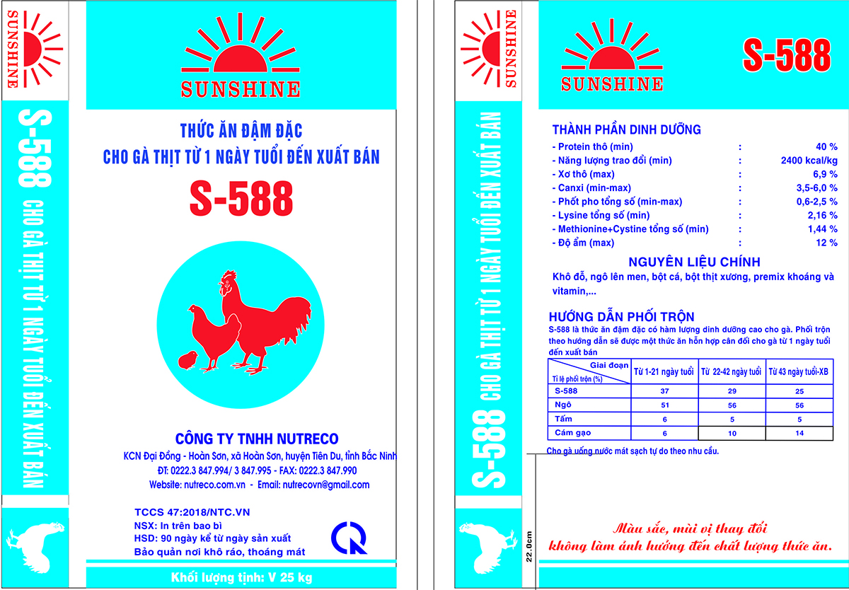 Thức ăn đậm đặc cho gà thịt từ 1 ngày tuổi đến xuất bán S-588