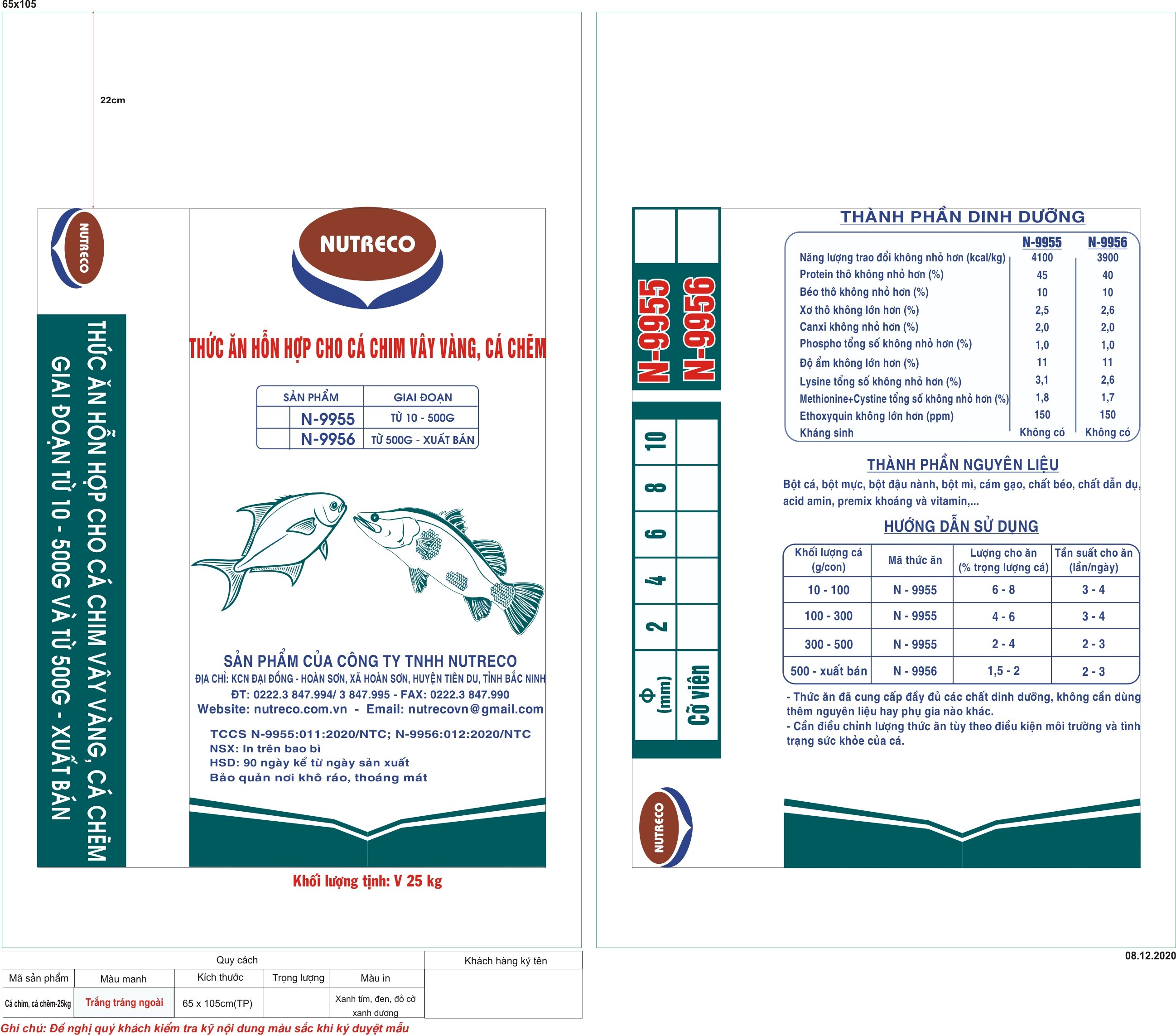 Thức ăn hỗn hợp cho cá chim vây vàng, cá chẽm N-9955, N-9956