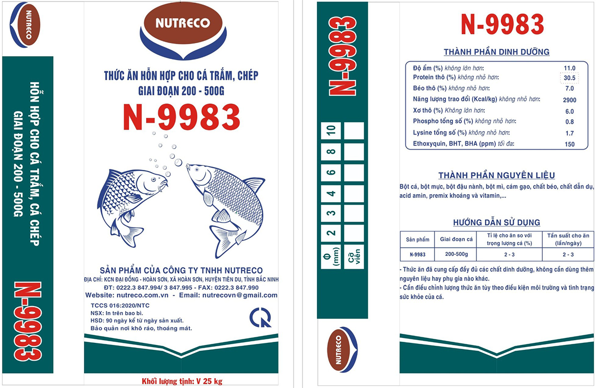 Thức ăn hỗn hợp cho cá trắm, chép giai đoạn 200-500G N-9983