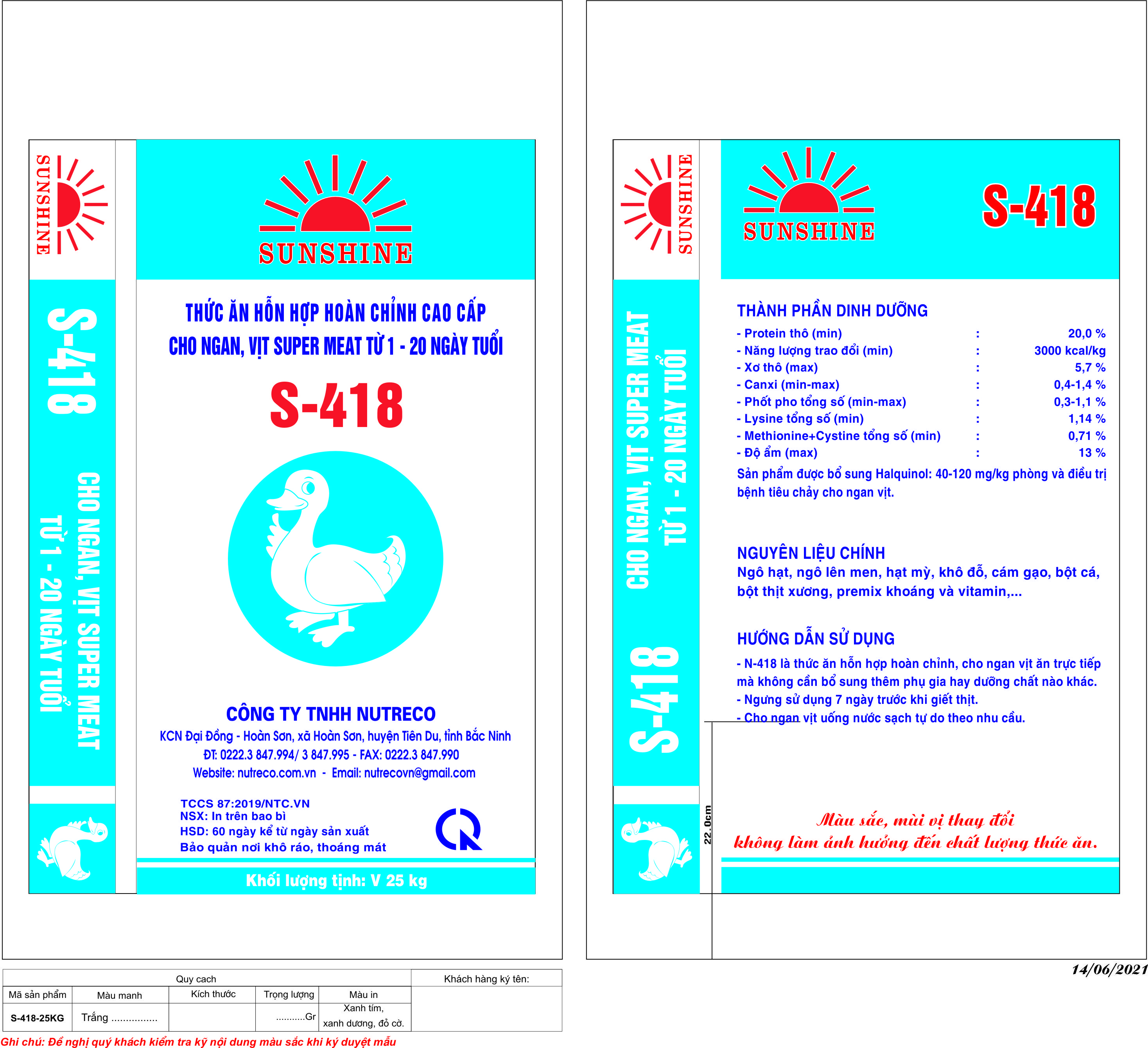 Thức ăn hỗn hợp hoàn chỉnh cao cấp cho ngan, vịt super meat từ 1 - 20 ngày tuổi S-418