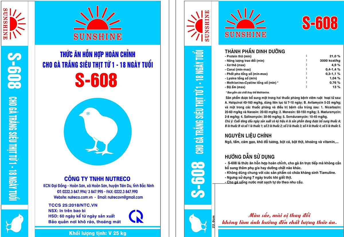 Thức ăn hỗn hợp hoàn chỉnh cho gà siêu thịt từ 1 - 18 ngày tuổi S-608