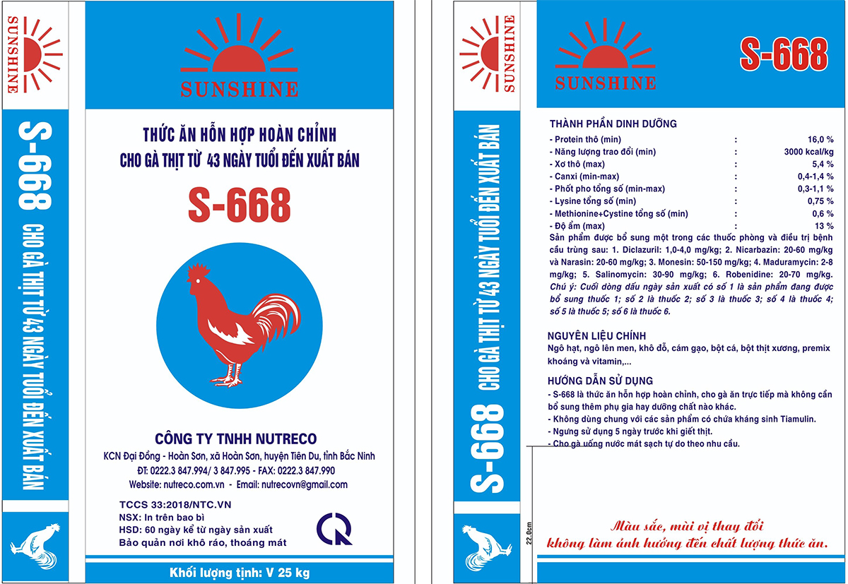 Thức ăn hỗn hợp hoàn chỉnh cho gà thịt từ 43 ngày tuổi đến xuất bán S-668