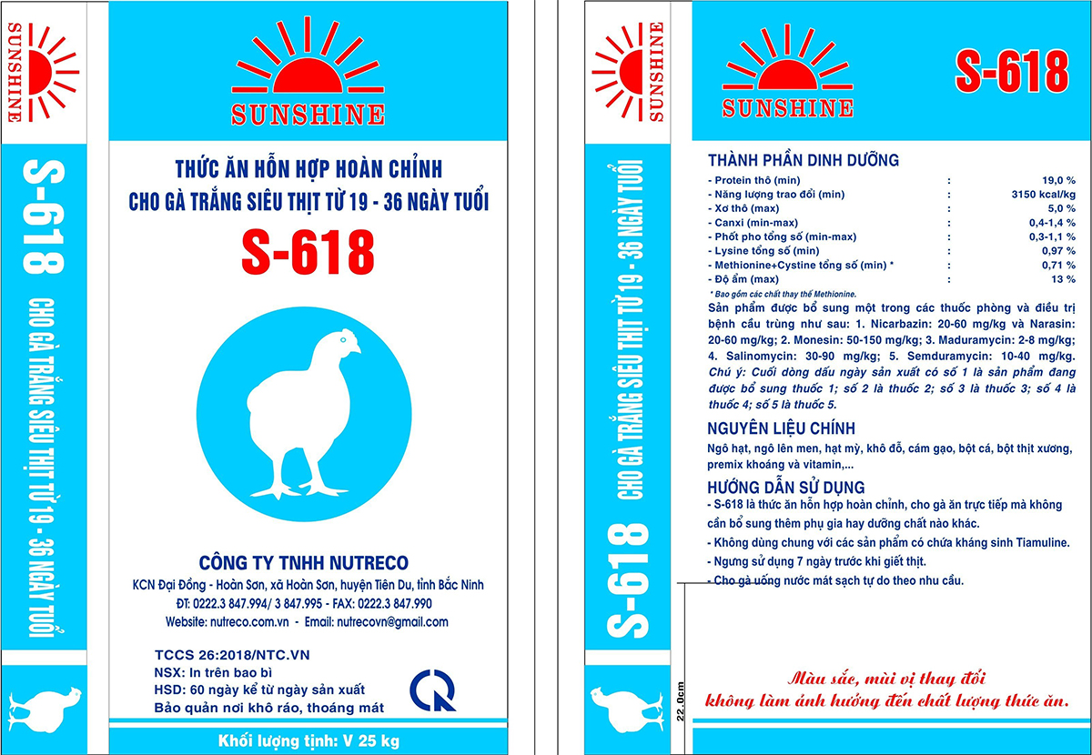 Thức ăn hỗn hợp hoàn chỉnh cho gà trắng siêu thịt từ 19 - 36 ngày tuổi S-618