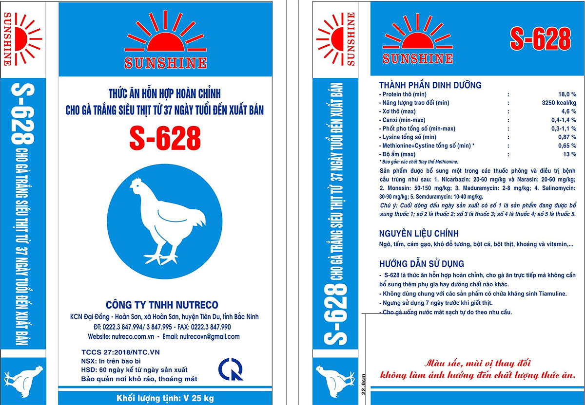 Thức ăn hỗn hợp hoàn chỉnh cho gà trắng siêu thịt từ 37 ngày tuổi đến xuất bán S-628