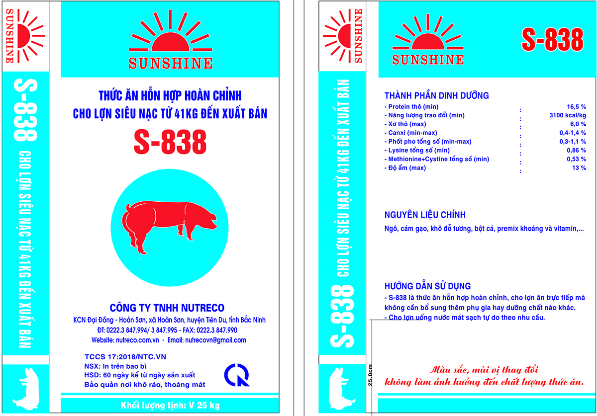 Thức ăn hỗn hợp hoàn chỉnh cho lợn siêu nạc từ 41kg đến xuất bán S-838