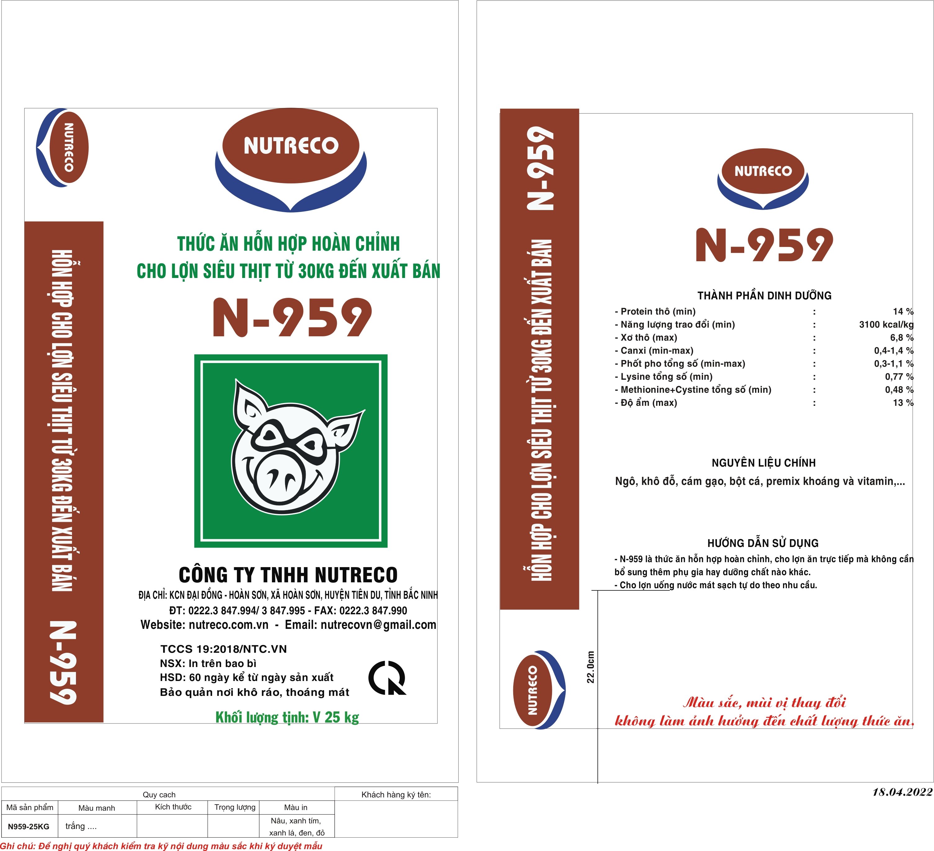 Thức ăn hỗn hợp hoàn chỉnh cho lợn siêu thịt từ 30kg đến xuất bán N-959