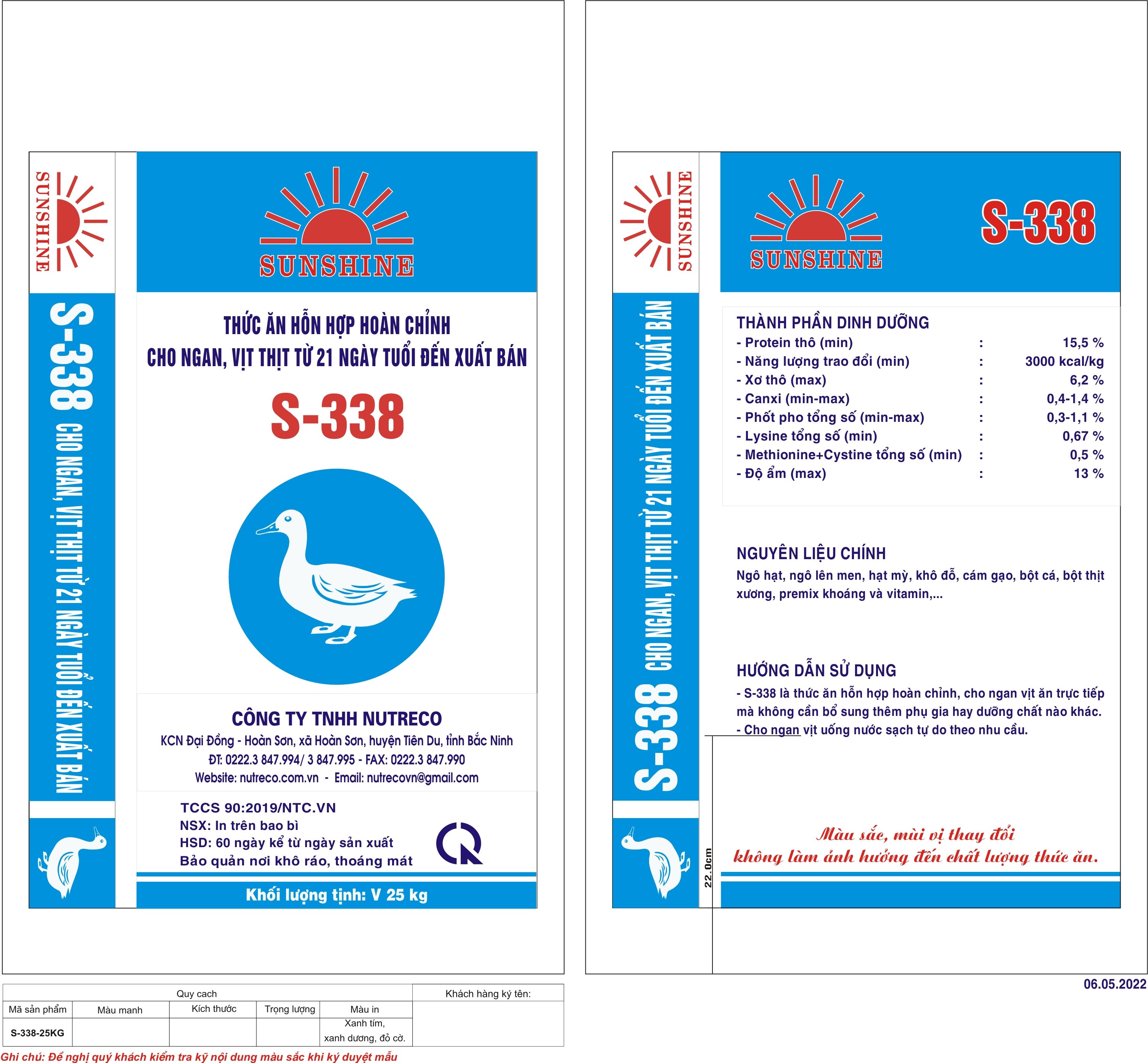 Thức ăn hỗn hợp hoàn chỉnh cho ngan, vịt thịt từ 21 ngày tuổi đến xuất bán S-338