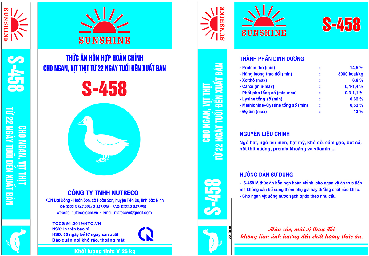 Thức ăn hỗn hợp hoàn chỉnh cho ngan, vịt thịt từ 22 ngày tuổi đến xuất bán S-458
