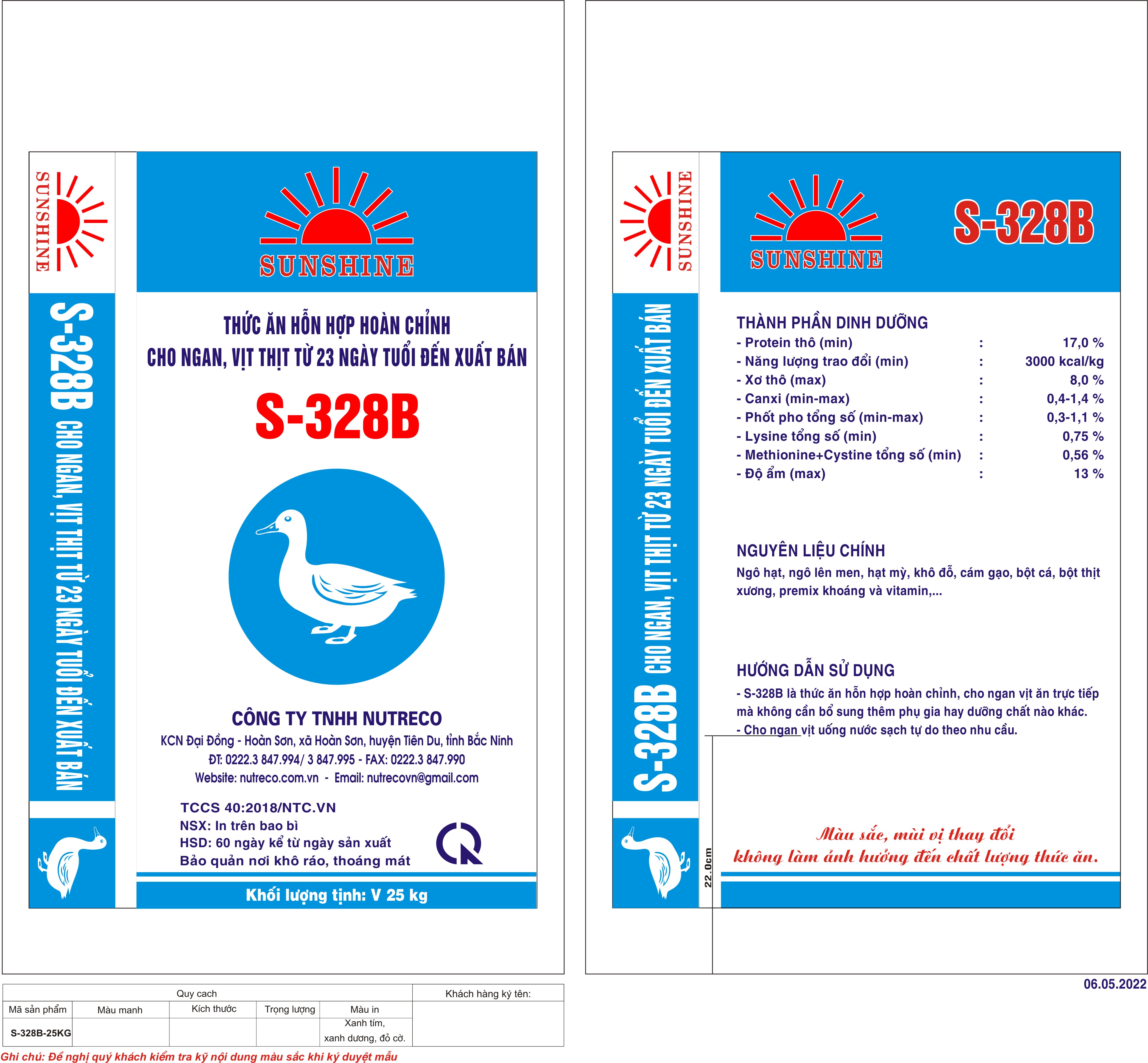 Thức ăn hỗn hợp hoàn chỉnh cho ngan, vịt thịt từ 23 ngày tuổi đến xuất bán S-328B