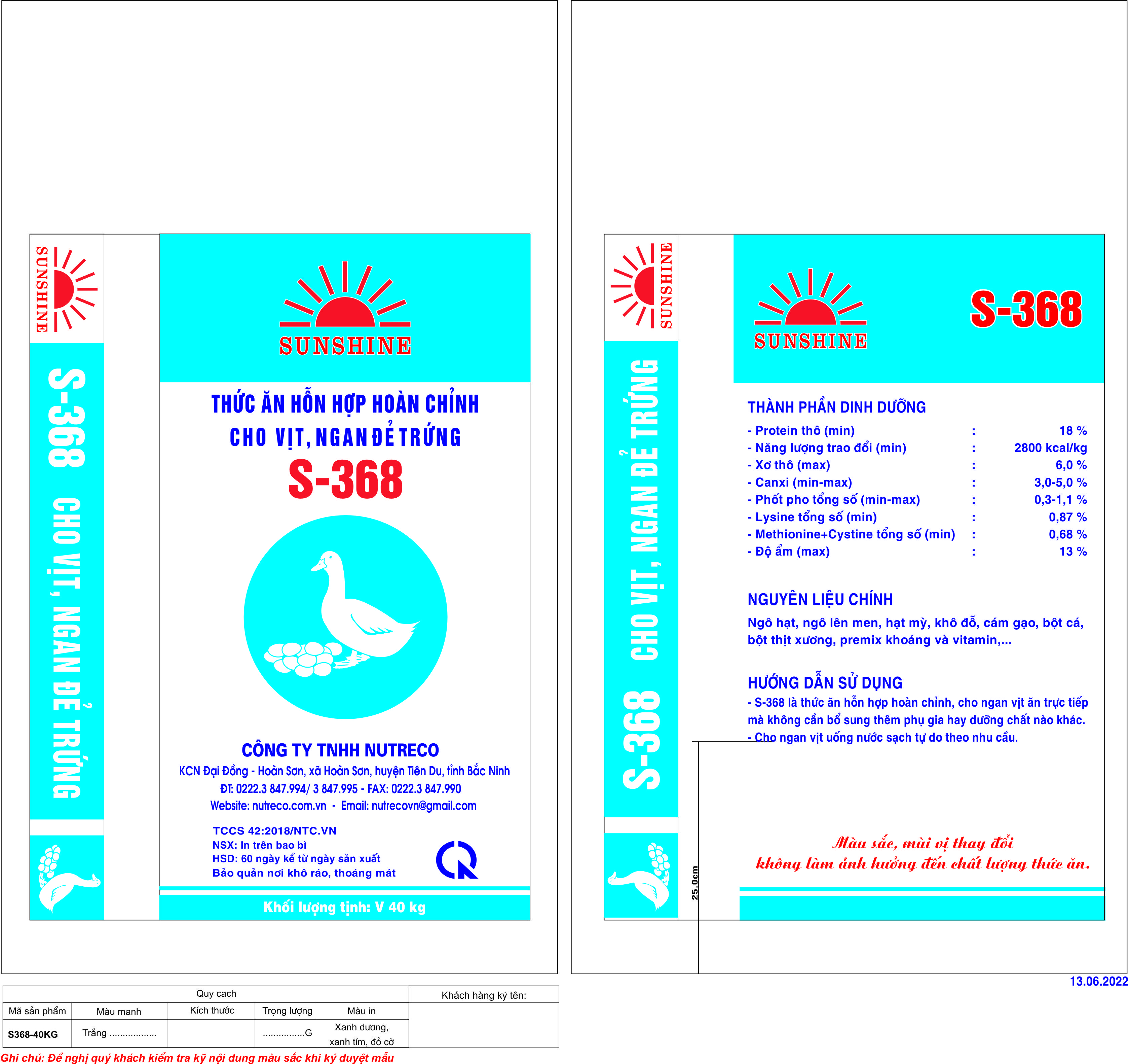 Thức ăn hỗn hợp hoàn chỉnh cho vịt, ngan đẻ trứng S-368