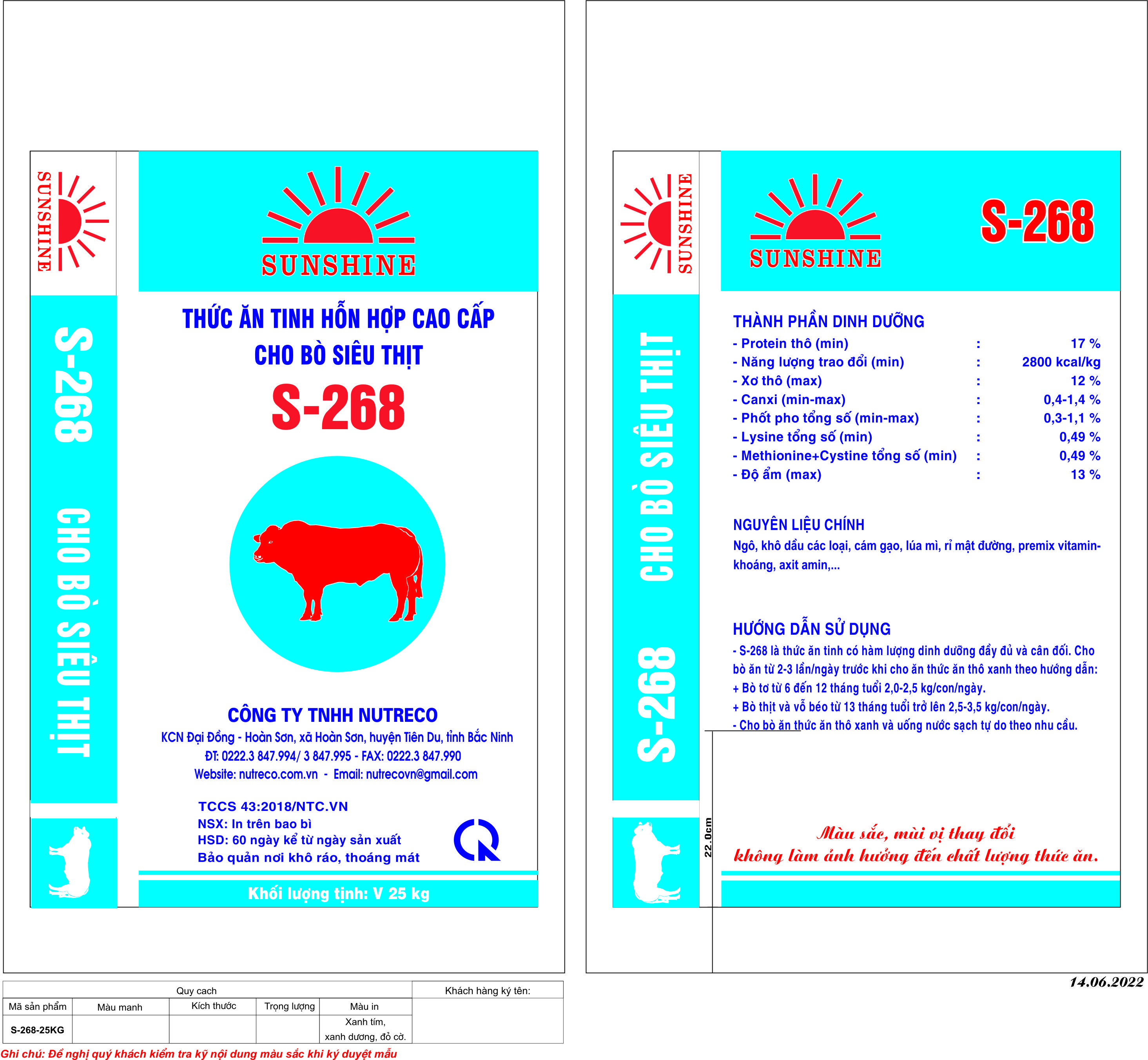 Thức ăn tinh hỗn hợp cao cấp cho bò siêu thịt S-268