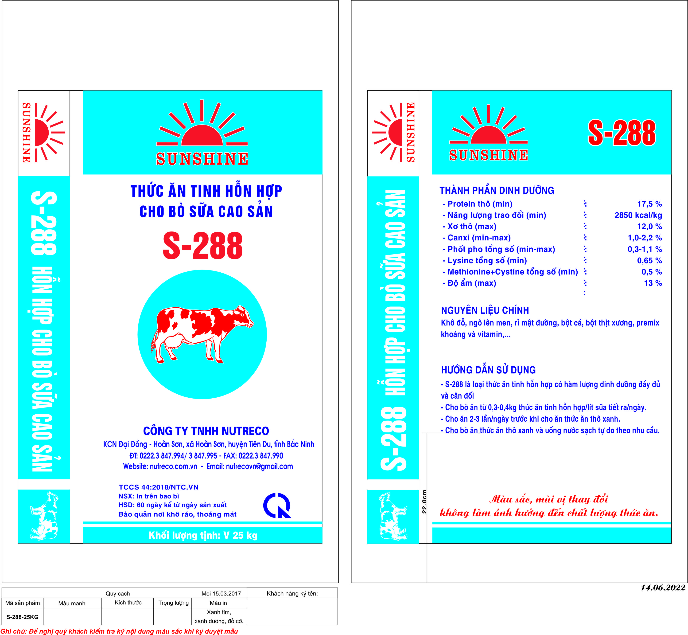 Thức ăn tinh hỗn hợp cao cấp cho bò sữa cao sản S-288