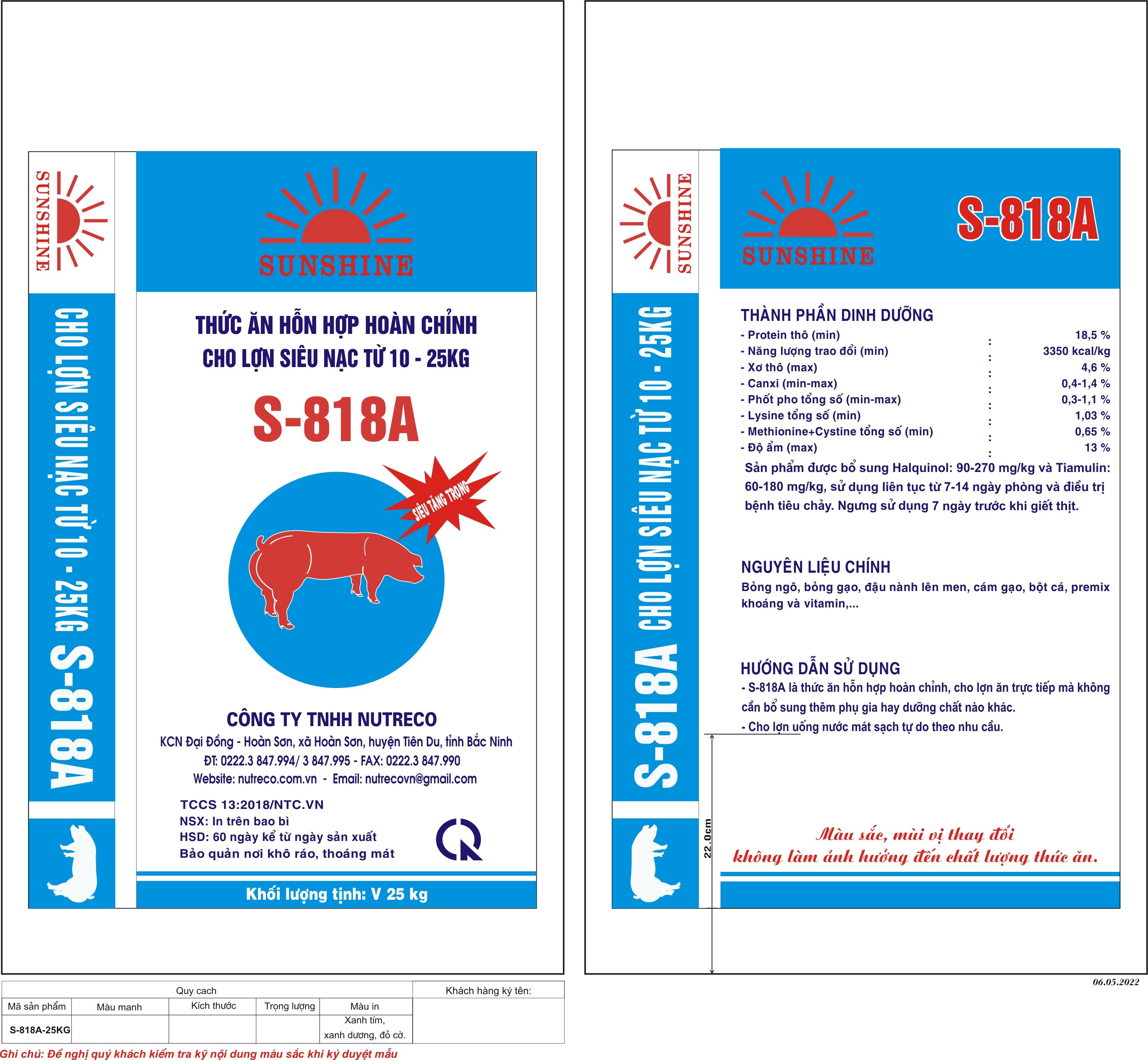 Thức ăn hỗn hợp hoàn chỉnh cho lợn siêu nạc từ 10 - 25Kg S-818A