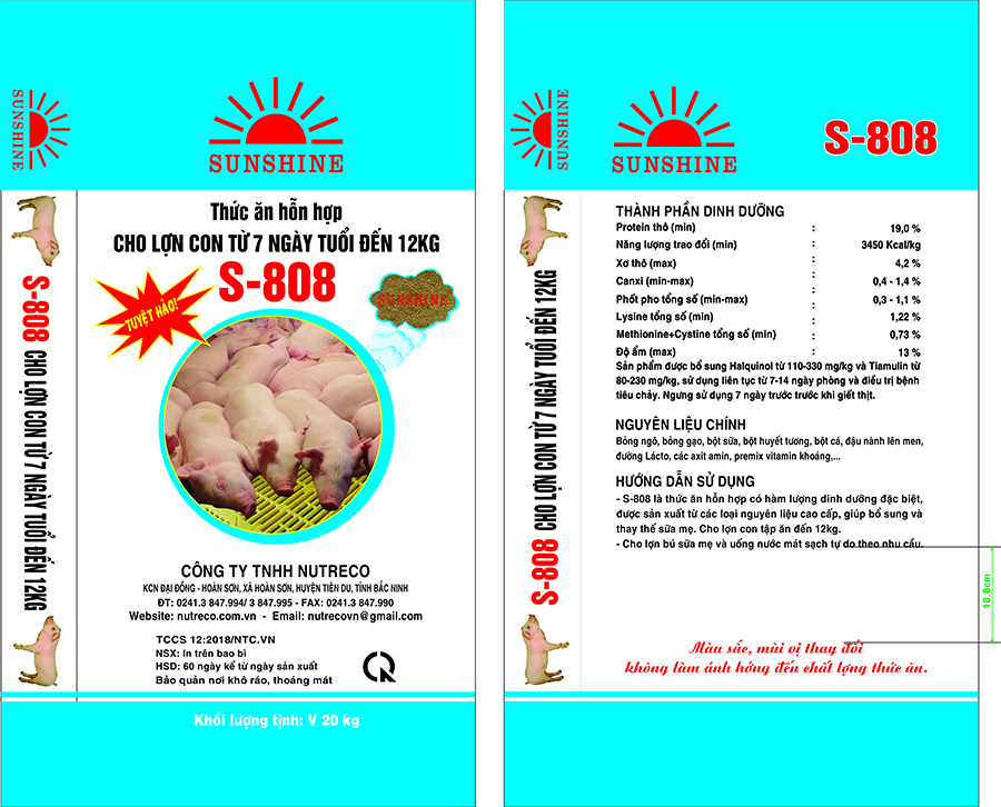 Thức ăn tinh hỗn hợp cho lợn con từ 7 ngày tuổi đến 12 kg S-808