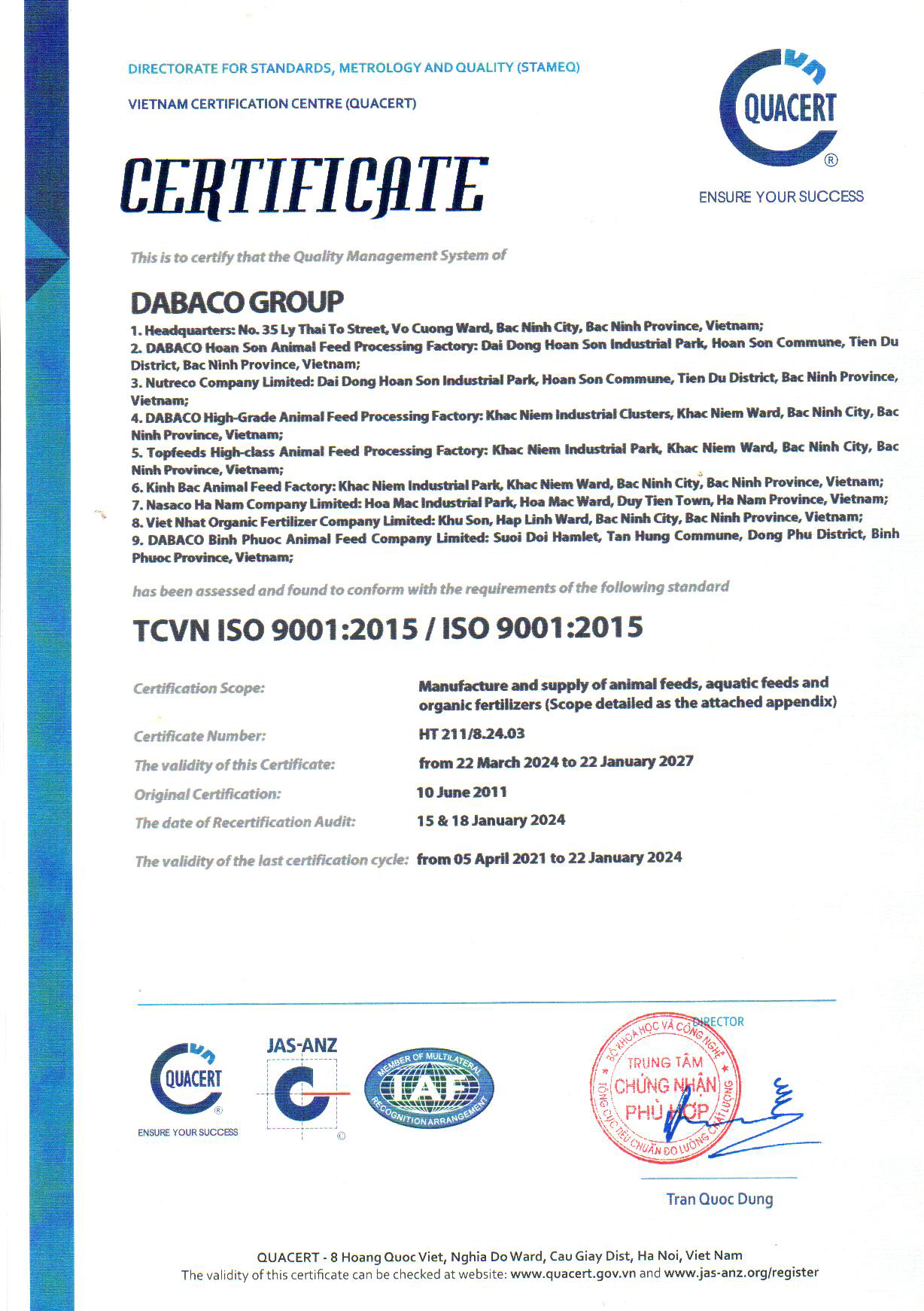 Hệ thống điều khiển thế hệ mới, hiện đại vận hành hoàn toàn tự động, quá trình sản xuất được lập trình sẵn và điều khiển bằng máy tính. Toàn bộ các công đoạn sản suất có camera giám sát 24/24 giờ. Việc Ứng dụng công nghệ tiên tiến trong tất cả các công đoạn: nghiền, trộn, trộn rỉ mật, ép đùn, ép viên, đóng gói… là yếu tố tạo thành hệ thống hoàn chỉnh trong sản xuất thức ăn chăn nuôi và thủy sản đạt chất lượng ISO 9001: 2018; ISO 22000: 2018, nâng cao hiệu quả chuyển hóa thức ăn của con vật, giảm thiểu ô nhiễm môi trường và tối đa hóa lợi nhuận cho người chăn nuôi.