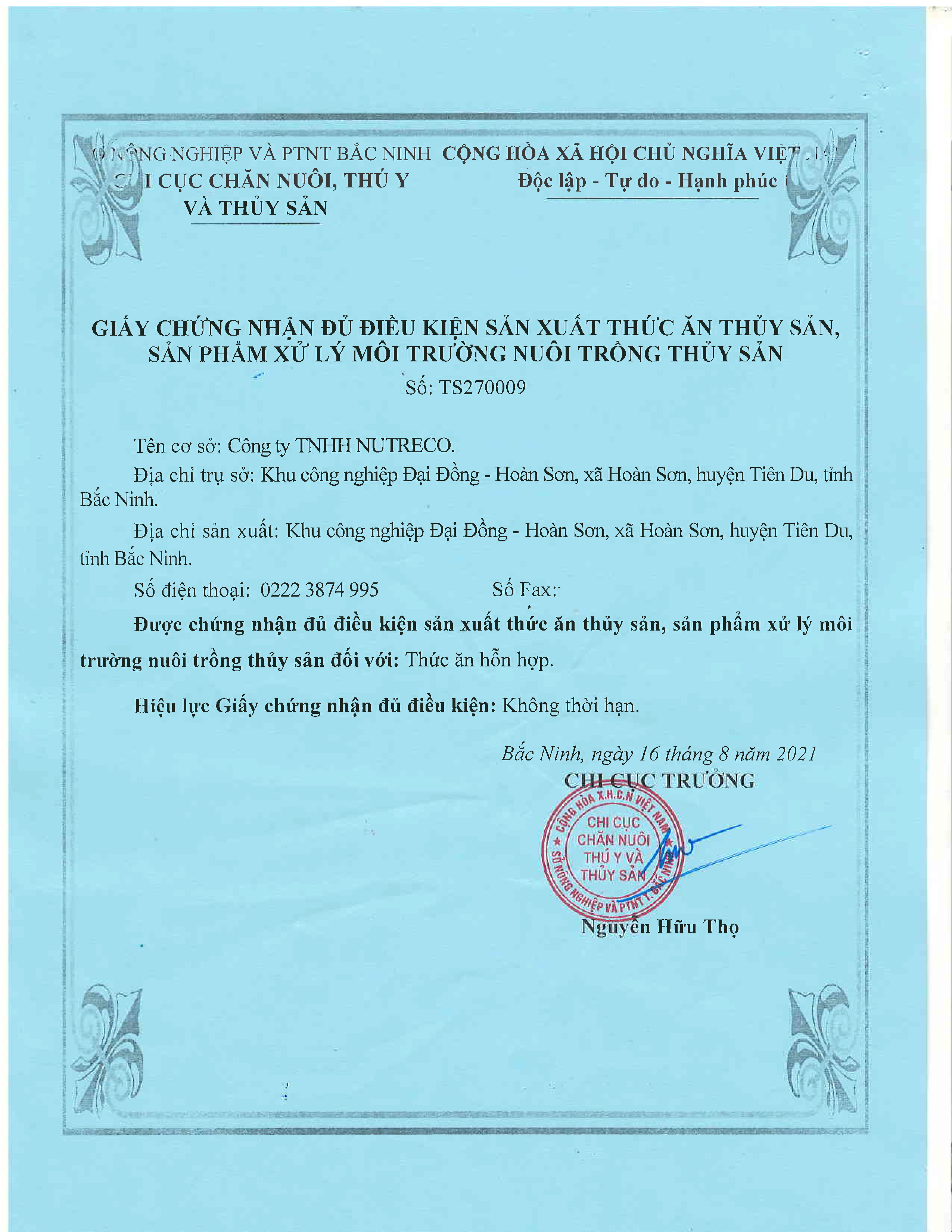 Năm 2020, Công ty TNHH NUTRECO tiếp tục xây dựng Nhà máy thức ăn thủy sản NUTRECO công suất 100,000 tấn/năm. Tháng 3 năm 2021 Nhà máy đã hoàn thành và đưa vào sử dụng . Đây là mô hình Nhà máy thức ăn thủy sản đồng bộ và hiện đại bậc nhất hiện nay công nghệ 100% nghiền siêu mịn với độ mịn lớn hơn 90% qua 80 mesh; 100% các sản phẩm được phun bằng hệ thống phun phủ chân không, giúp lượng dầu thẩm thấu sâu vào bên trong lõi viên thức ăn, giảm thất thoát trong quá trình cho ăn; hệ thống ép đùn sử dụng hệ thống trục đôi; các công nghệ này giúp tối ưu chất lượng sản phẩm, nâng cao hiệu quả kinh tế cho người chăn nuôi. Nhà máy sản xuất tất cả các loại sản phẩm thức ăn thủy, hải sản nuôi tại môi trường nước mặn, nước lợ, nước ngọt và nước lạnh, bao gồm cả cá biển, cá tầm, cá hồi, thức ăn cho tôm, ếch… với các thương hiệu đã trở lên quen thuộc với người chăn như Nutreco, Sunshine…
